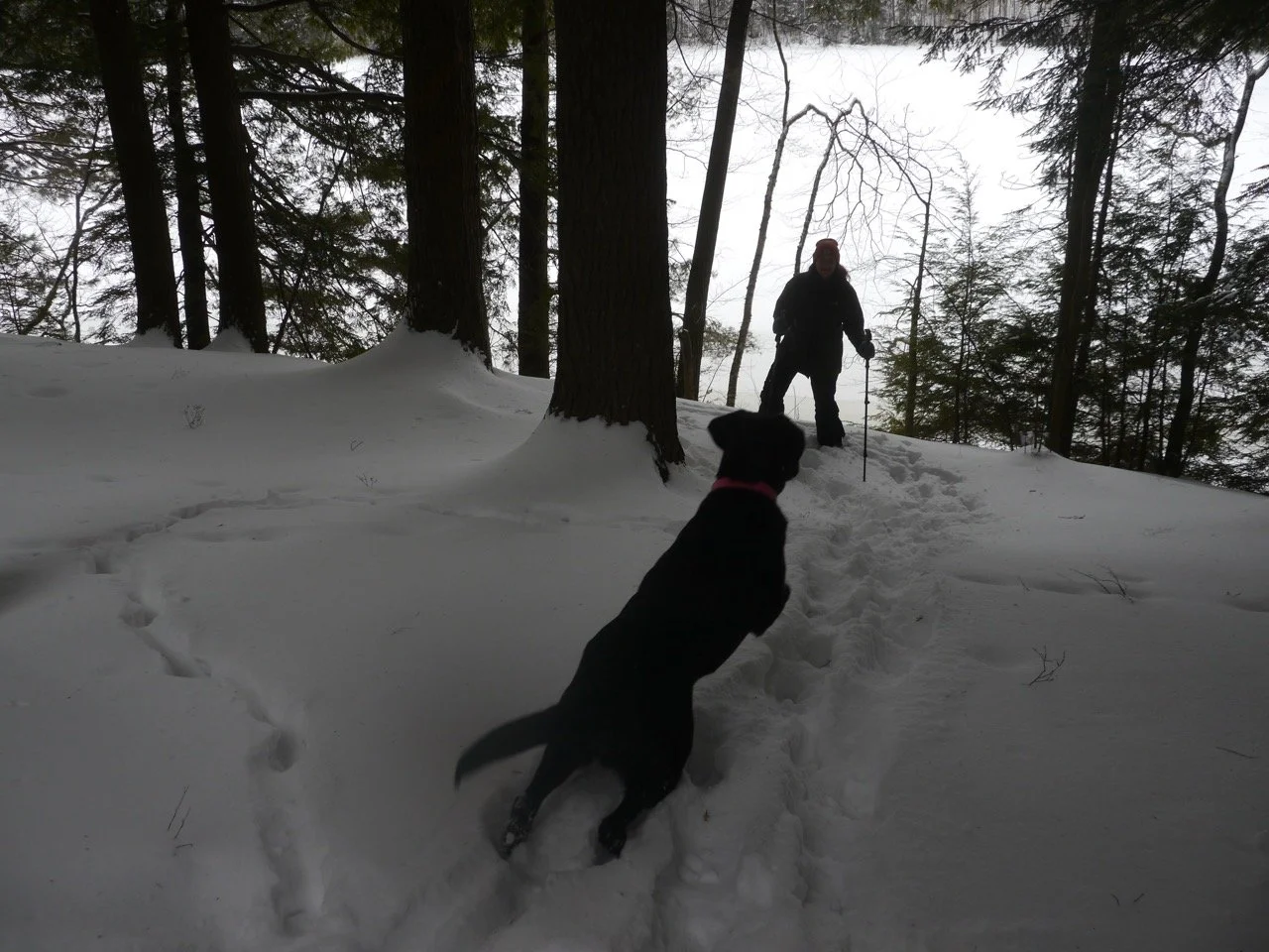 “You know you’ve been holed up too long, when a simple trip to the grocery store highlights how far your chit chat skills have fallen. With real enthusiasm, but none of my usual eloquence, I stood before the cashier. “There’s nothing like a good box”, I said. He took up the gauntlet. “Right?”. Maybe there was a short pause, but he quickly glossed over it. “So much better than bags. And, you can use them again ... for other ... stuff”. I wasn’t quick with a comeback, but since I was watching him scan my items, I got an idea. “Nothing like a good potato,” I said, with some effort. We both watched carefully, as my bag of red potatoes went on by, down the conveyor belt, skidding gently, to a stop. Gosh, since when had buying food become so fraught? It thought back to the days of taking all my kids food shopping. Had it been easier, somehow, to arrive at the register with a screaming child? At least then, I could distance myself, somewhat. Not my fault! Now, it was clearly my fault. I was no longer on my game, saying stupid things, like this, to an employee, of a business I admired. Well, you can bet I ran out of there with my cappuccino, and took back roads, all the way home, despite 30 miles of frost heaves. A fail in town did not mean a fail, on the trail. I contacted my cohort immediately, upon reaching my wood stove. “Time for an adventure?” I texted, with a virtual wink and a smiley face. “I was just about to text you!” she exclaimed. The universe evidently knew, I was on the same page with at least one other person. I texted back. “I got an idea”. She didn’t need coaxing. We reconnoitered in my driveway, within minutes. We took the truck, feeling that we might need studs, and passed David’s house, then Lucky Seven, the artesian roadside spring, and finally, the Ripton store. But staying on task, we clipper-ed onward, to the turn-off, connected to another turn-off, where the road might, or might not be plowed, to Silver Lake. Impressive, really, how far we could drive, and then a little further, on un-sanded packed snow, until it was, decidedly, the end. We parked. “Here, not a moment too soon”, she quipped, as the dog bounded out of the back. “This is ... remote”, she breathed. We stood for a minute, in the silence, and the snow. “Oh, everyone says that about other parts of Vermont besides their own”, I replied. It would be an hour downhill, booted & snow shoed, to the closed up campground, its elegant hemlock groves leading to a frozen lake, and rushing sluiceway outflow, from miles distant Sugar Hill Reservoir. I was cold. My coat, not buttoned properly, was taking on too much air, and my sweat had soaked through two layers. “I prefer hikes to be uphill going in, and downhill, going out,” I muttered. She agreed, for there was no point in protesting the obvious. It would be a slog, either way, and only good humor would save us,. Our dog wagged and leapt to take the lead. There are times when enthusiasm is clearly, no fool.”