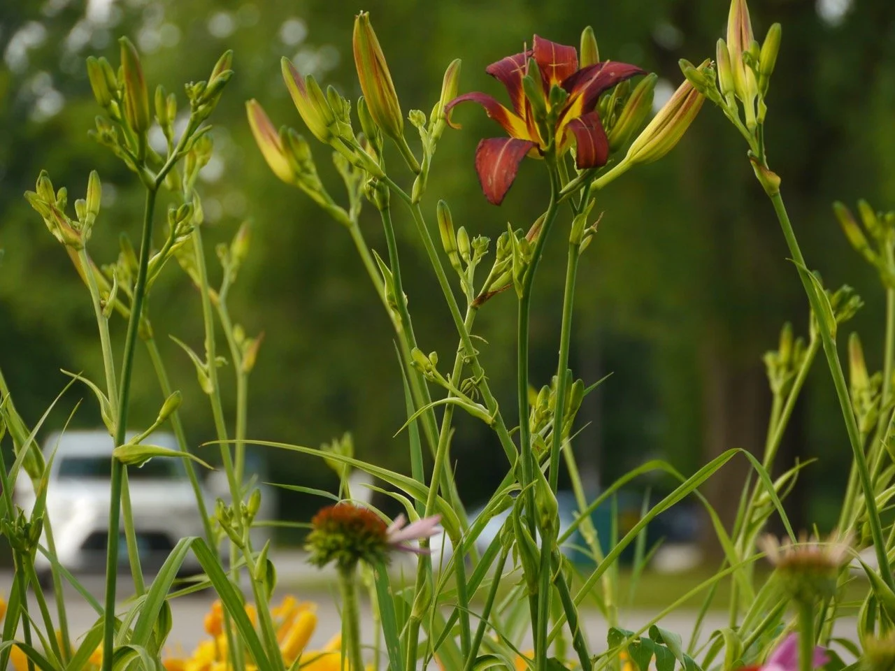 “A few of the picnic tables are occupied, as dark clouds move in over the strip, temporarily eclipsing city traffic, sirens, air brakes, and muffler-less road bike noise. One man stands like a statue, his mobile phone aloft, aimed towards the sky. “60 mile an hour winds coming, & hail”, he announces, accurately mimicking his weather app. We still have work to do, so I take his report with a grain of salt, not ignoring it, but not yet convinced. We see a lot of weather pass by, as gardeners. Much of it grazes us, some of it imposes volatility on the day, but it’s rare that our operations come to a standstill. I take pride in my artful scheduling, despite the failures. The air is getting dense. Some drops? Yes. I look around for my crew. Nikki rushes over. She has experience with tornadoes, hailing from the mid-west. “I think we ought to pack up,” she says, grabbing tools, and buckets, and heading for the truck. My gut tells me, she’s right. Long story short, next thing we know, we’re eating our sandwiches, two of us in the Chevy, two in the Toyota, pounded on by a torrential downpour. The big wind must have gone north, and no hail. Finally the storm begins to move out, and there is Nikki again, this time at my truck window. “On the house!”, she mouths. I roll down the driver’s side glass just in time, as an overflowing portion of hot french fries arrives, steaming & aromatic, only barely contained by their humble cardboard box. “Do you want catsup?” she says, her smile filled with excitement. I nod yes, and take two small dollops, housed in tiny, scalloped paper cups. Another day in the life of the gardeners, at Al’s French Frys. More soon, as the gardening season progresses, and the root beer floats keep coming.”